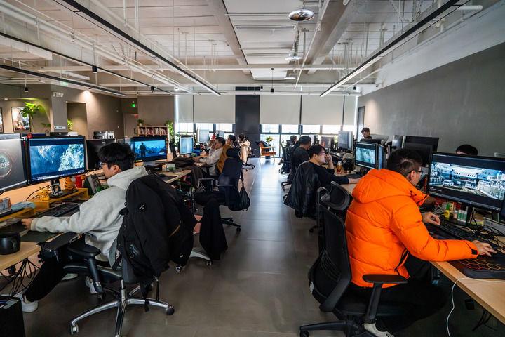 2月10日,墨境天合成都數(shù)字圖像科技有限公司的工作人員在制作動畫效果。新華社記者 薛晨 攝