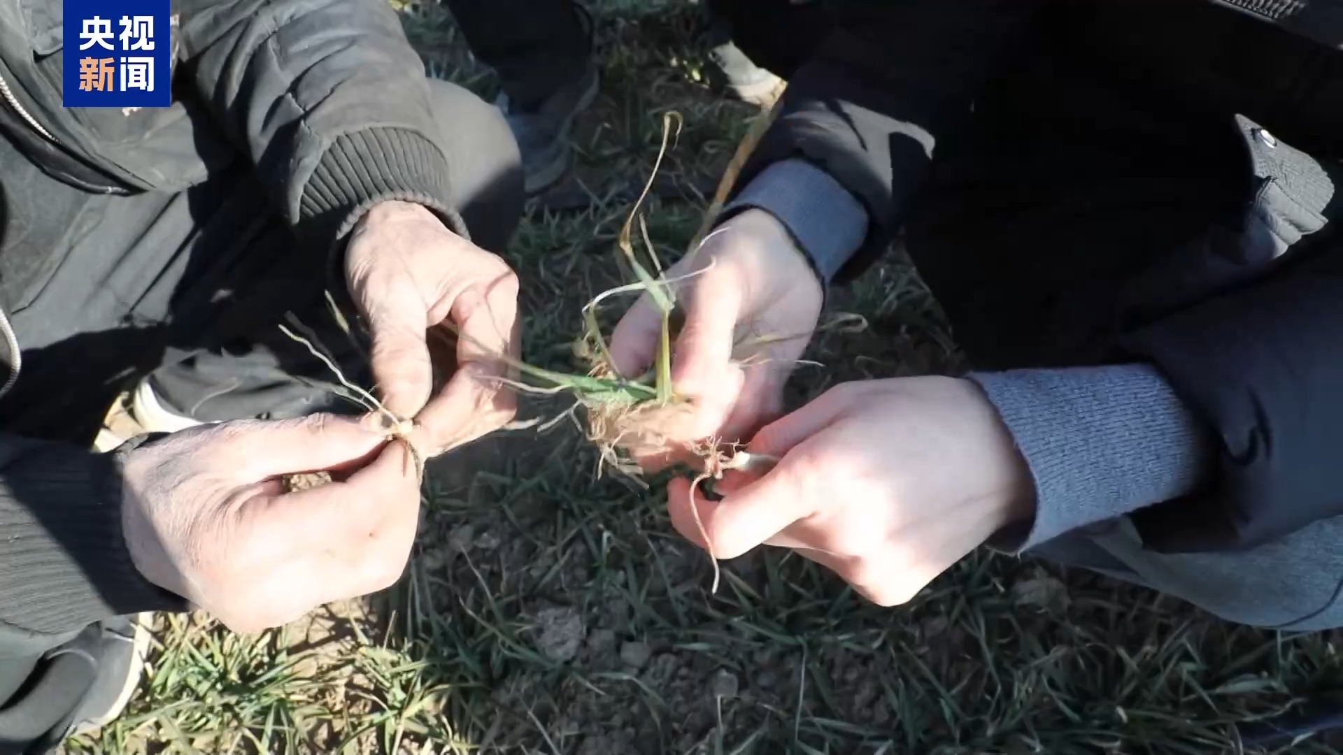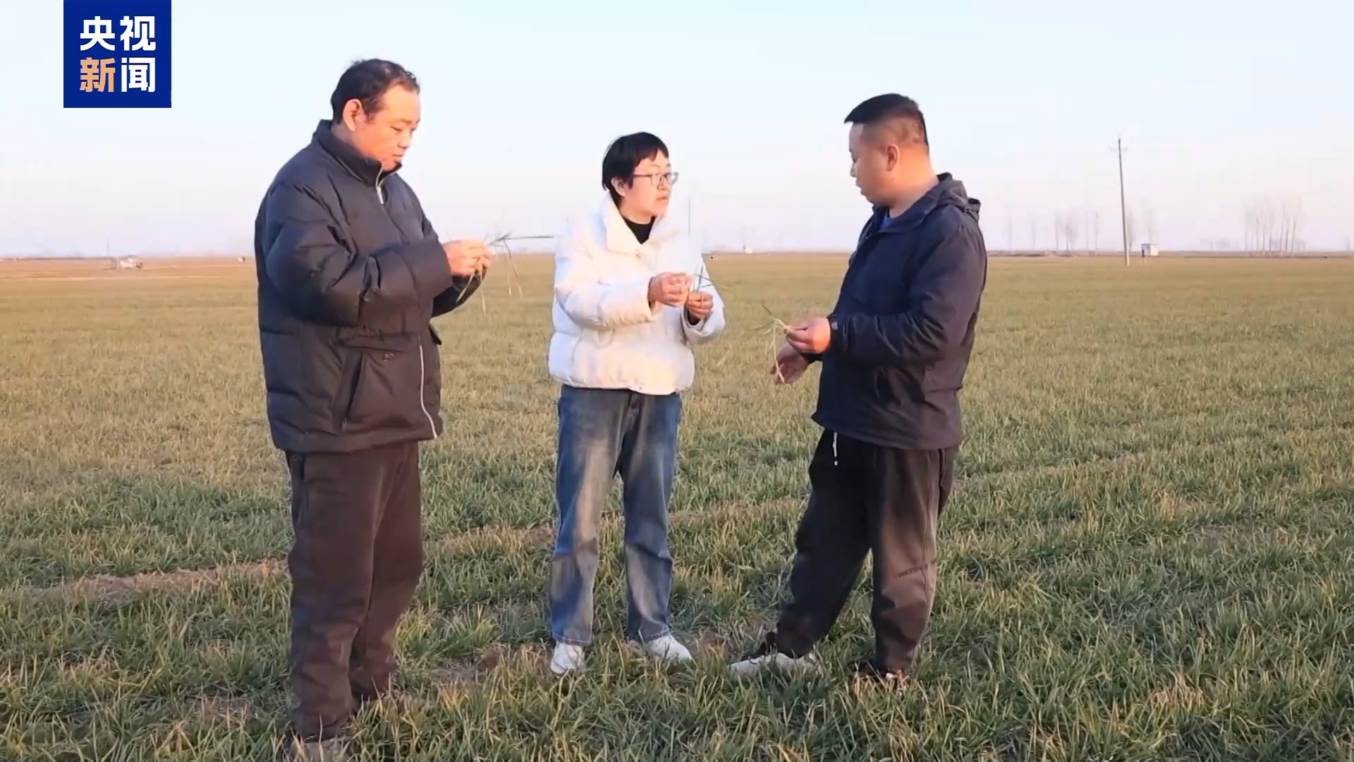 在山東煙臺招遠(yuǎn)市一處麥田里,農(nóng)技專家正仔細(xì)查看小麥的生長情況。