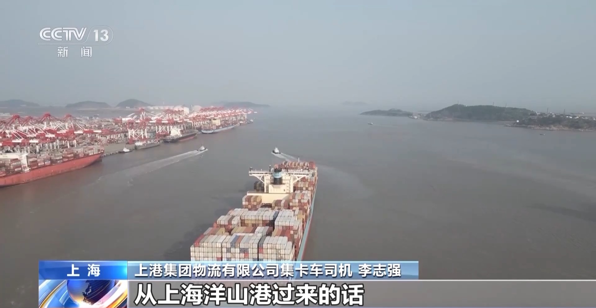 上港集團(tuán)物流有限公司集卡車司機(jī) 李志強(qiáng):我們每天從上海洋山港過(guò)來(lái),應(yīng)該是六趟到七趟左右,收入肯定是比去年更可觀了。