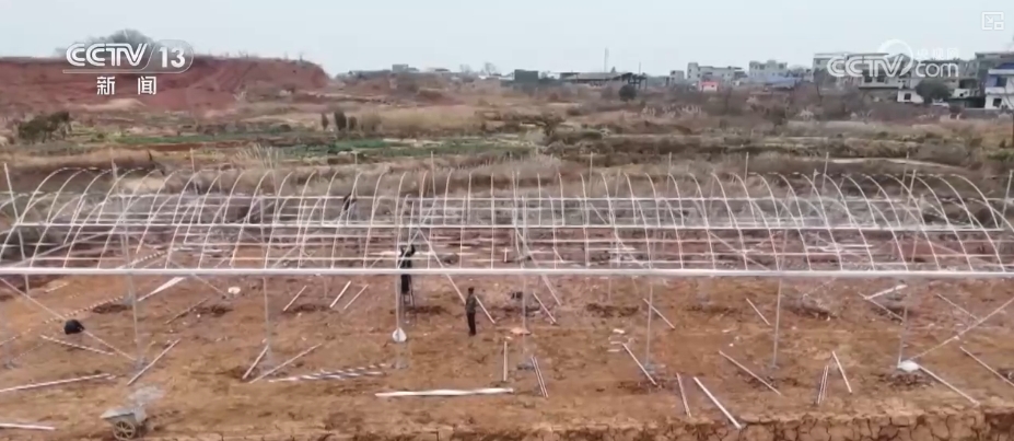 在湖南永州道縣,工人們正在抓緊建設集中綜合育秧大棚。大棚配套自動噴灌、恒溫、通風等一體化設施,可一次性完成覆土、播種、澆水等作業(yè)流程。