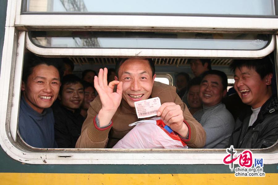 2010年春運(yùn),旅客展示自己的火車票。中國網(wǎng)發(fā) 南鐵供圖