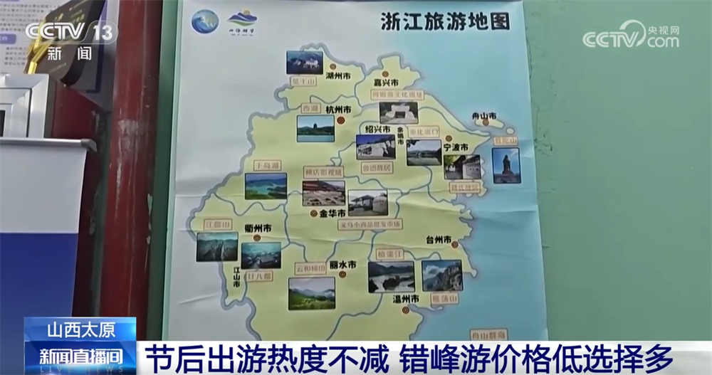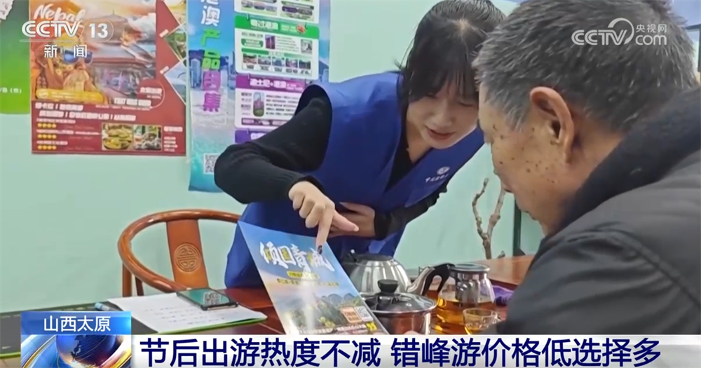 記者在山西太原市區(qū)的一家旅行社看到,宣傳海報(bào)擺放在顯眼位置,不少消費(fèi)者前來咨詢近期的出游線路。