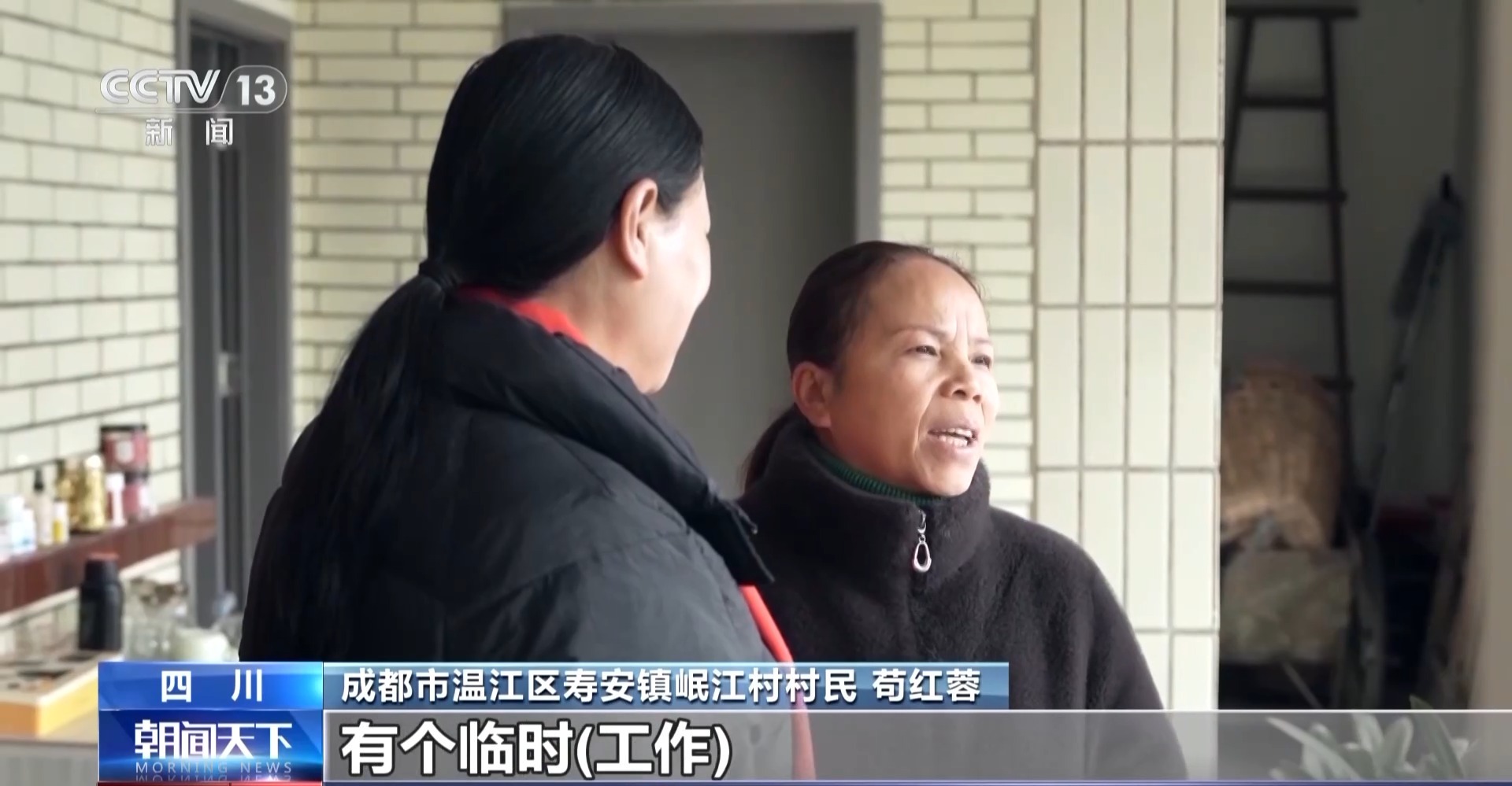 成都市溫江區(qū)壽安鎮(zhèn)岷江村村民 茍紅蓉:讓我們這些在家里照顧老人的,有個臨時工作,有點(diǎn)兒收入。每天在家里,除了地頭和照顧老人,好多時候也沒有啥事了。