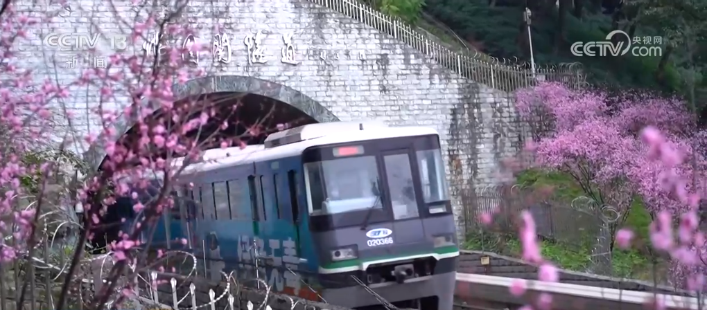 根據(jù)游覽標(biāo)識(shí),順著半山崖線往下走,就能看到“開往春天的列車”。軌道交通2號(hào)線列車從一片粉色的花海中呼嘯而過,叢叢花海穿行其間,繪就了一幅爛漫的春景圖。目前,佛圖關(guān)公園的千株美人梅已盛開約80%,盛花期預(yù)計(jì)持續(xù)至3月中旬。