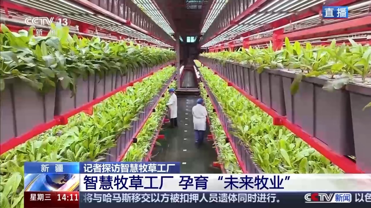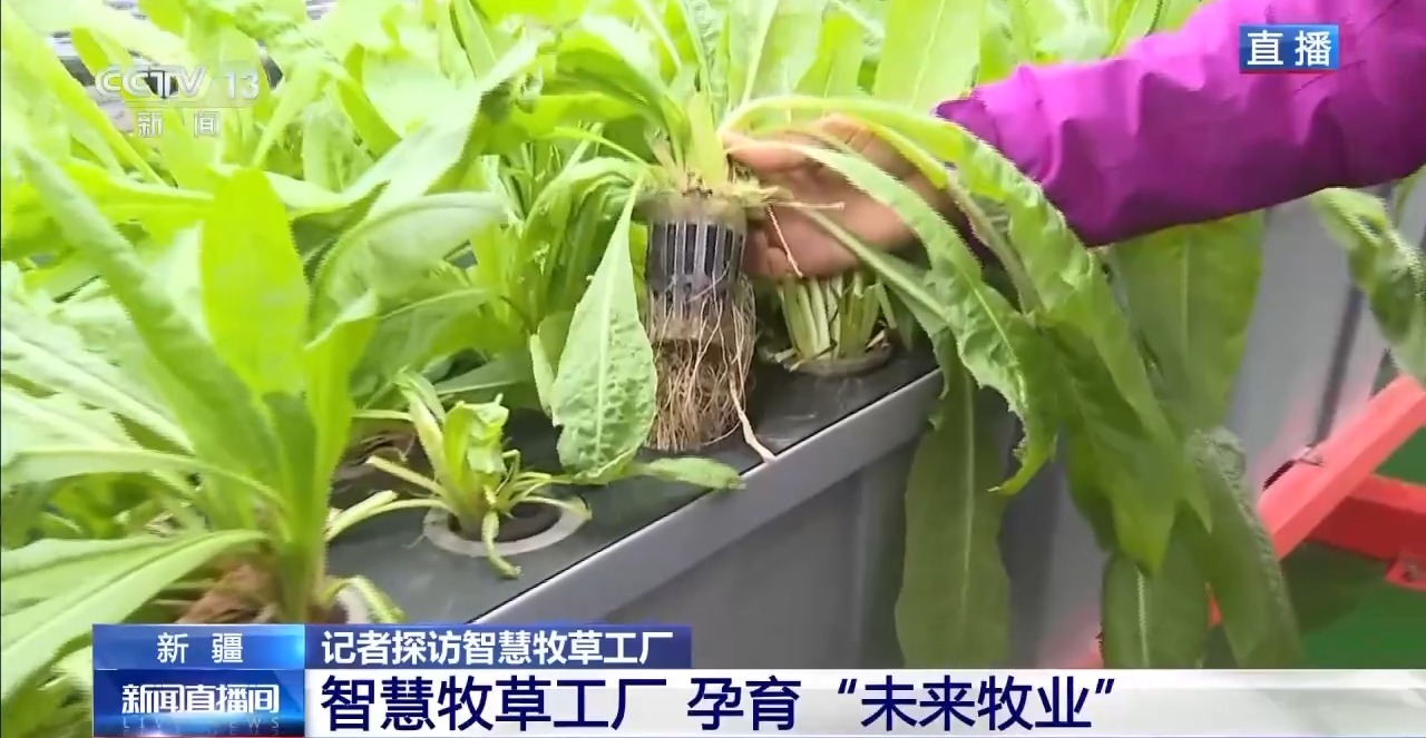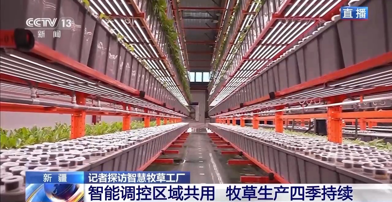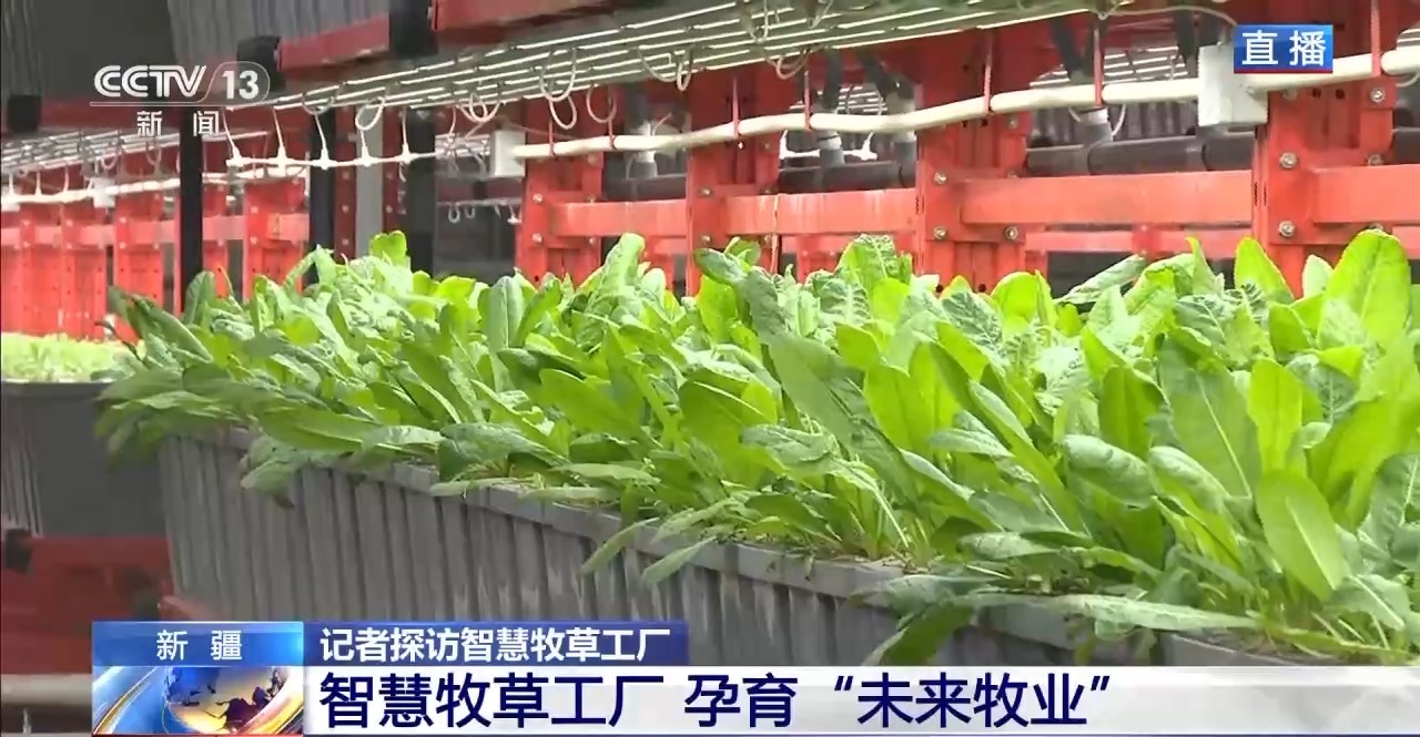 總臺記者 崔寧:說到牧草,大家會想到一望無際的大草原,會想到風(fēng)吹草低見牛羊的千里沃野,但我現(xiàn)在所在的新疆圖木舒克市智慧牧草工廠里看到的是另外一番景象,廠房里沒有土壤,沒有四季輪回,牧草卻在這里生長得郁郁蔥蔥,而且看起來它的葉片也非常壯實(shí)。