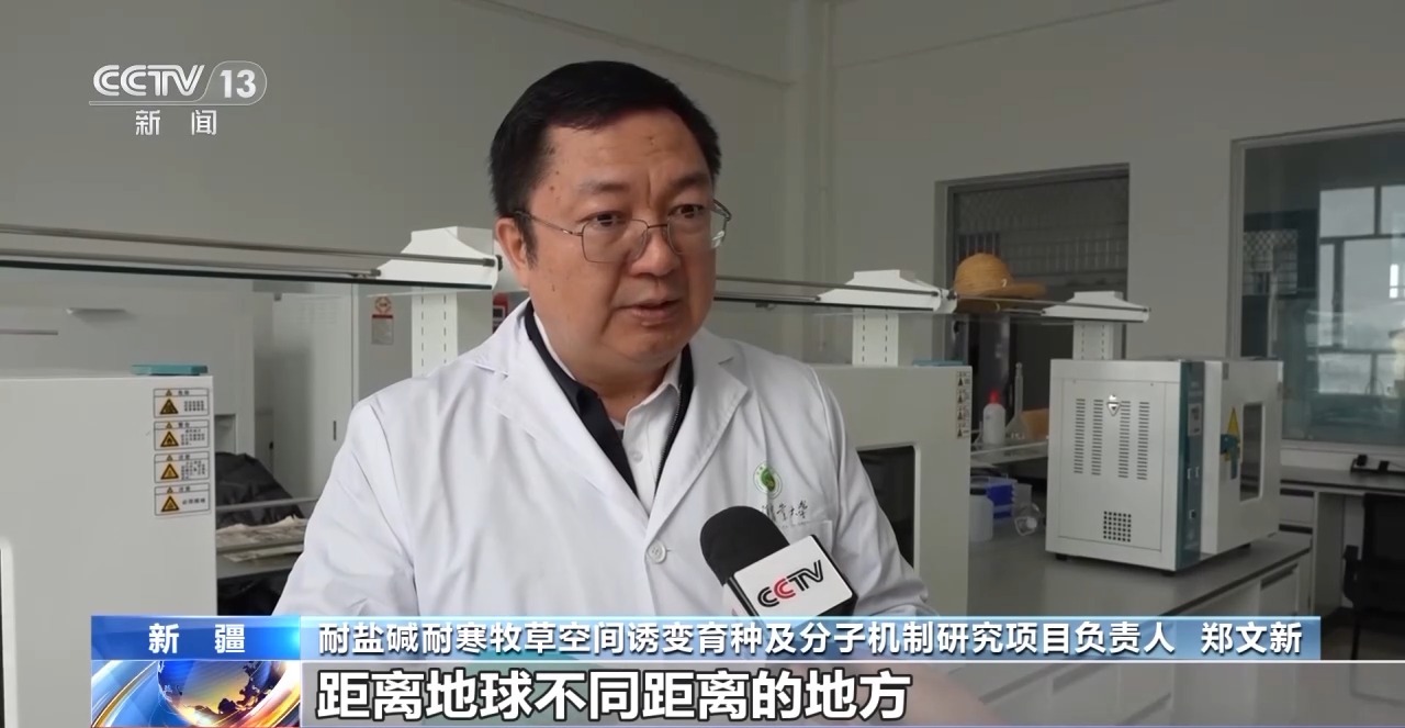 耐鹽堿耐寒牧草空間誘變育種及分子機(jī)制研究項(xiàng)目負(fù)責(zé)人 鄭文新:把種子帶到太空的不同地方,距離地球不同距離的地方,有可能會出現(xiàn)一些不同的變化,希望通過太空育種,能夠把種子的耐鹽堿、耐寒、耐旱、耐熱,很多特性能夠創(chuàng)造出來。