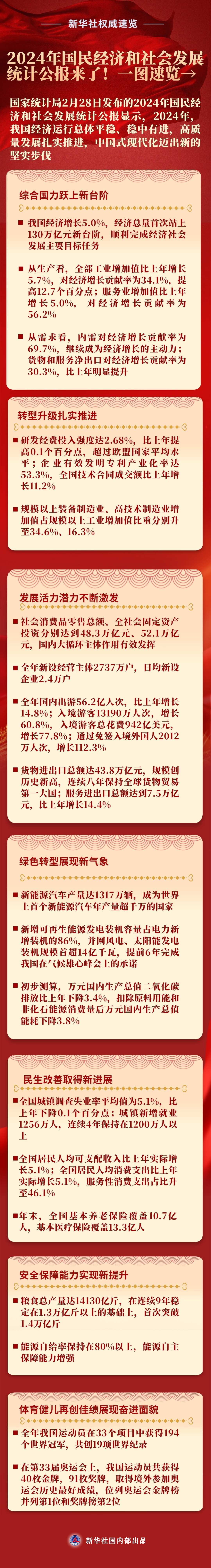 新華社權(quán)威速覽丨2024年國民經(jīng)濟(jì)和社會(huì)發(fā)展統(tǒng)計(jì)公報(bào)來了!一圖速覽→