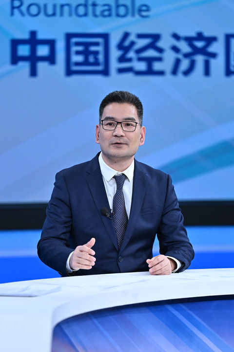 ??政府工作報(bào)告起草組成員、國(guó)務(wù)院研究室綜合一司副司長(zhǎng)黃良浩在第十四期“中國(guó)經(jīng)濟(jì)圓桌會(huì)”錄制現(xiàn)場(chǎng)發(fā)言。新華社記者 李鑫 攝