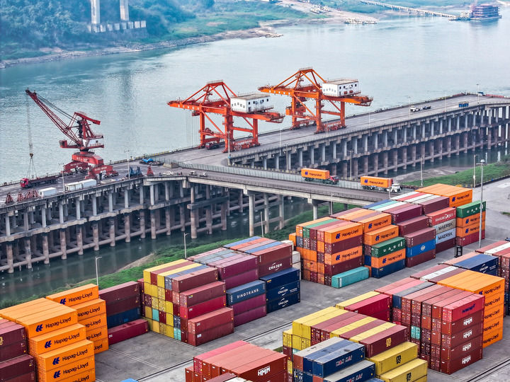這是2025年2月25日拍攝的重慶兩江新區(qū)果園港(無(wú)人機(jī)照片)。新華社記者 唐奕 攝