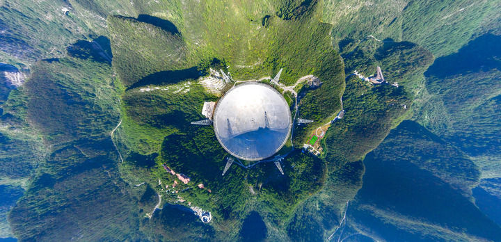 2024年9月25日拍攝的位于貴州省平塘縣的“中國天眼”(無人機全景照片,維護保養(yǎng)期間拍攝)。新華社記者 歐東衢 攝