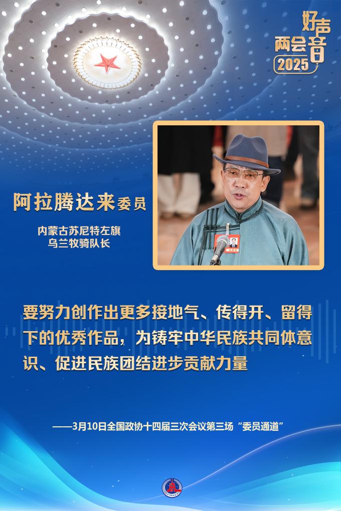 “在內(nèi)蒙古大地上,活躍著75支烏蘭牧騎隊(duì)伍,有3000多名隊(duì)員,每年開展演出1萬多場?!卑⒗v達(dá)來委員說,要努力創(chuàng)作出更多接地氣、傳得開、留得下的優(yōu)秀作品,為鑄牢中華民族共同體意識、促進(jìn)民族團(tuán)結(jié)進(jìn)步貢獻(xiàn)力量。