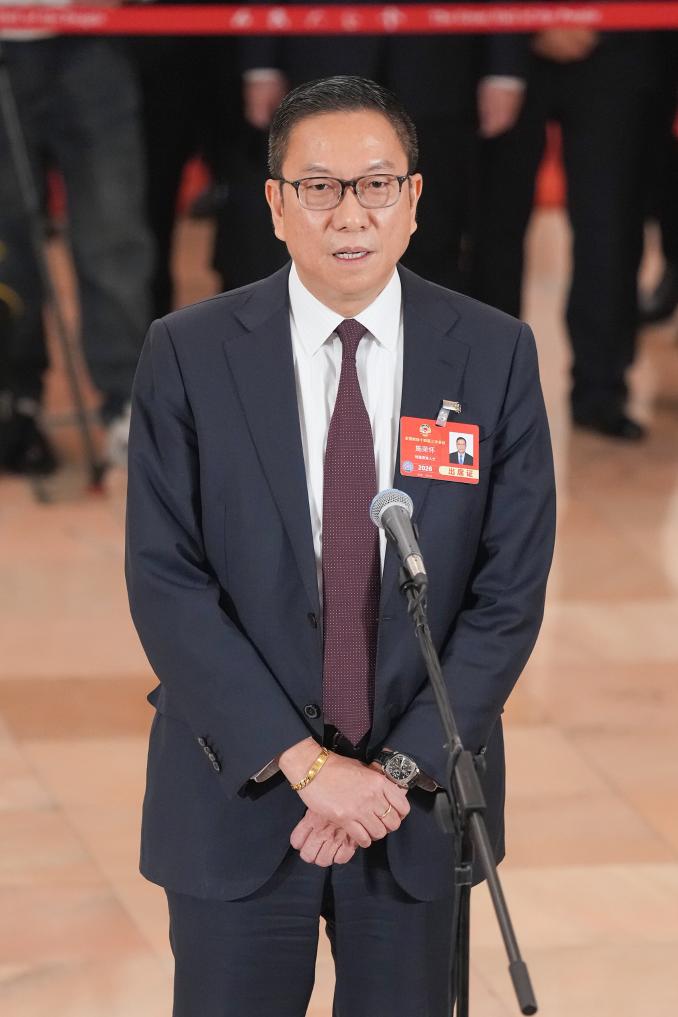 3月10日,全國政協(xié)十四屆三次會議第三場“委員通道”集體采訪活動在北京人民大會堂舉行。這是全國政協(xié)委員施榮懷接受媒體采訪。新華社記者 才揚(yáng) 攝