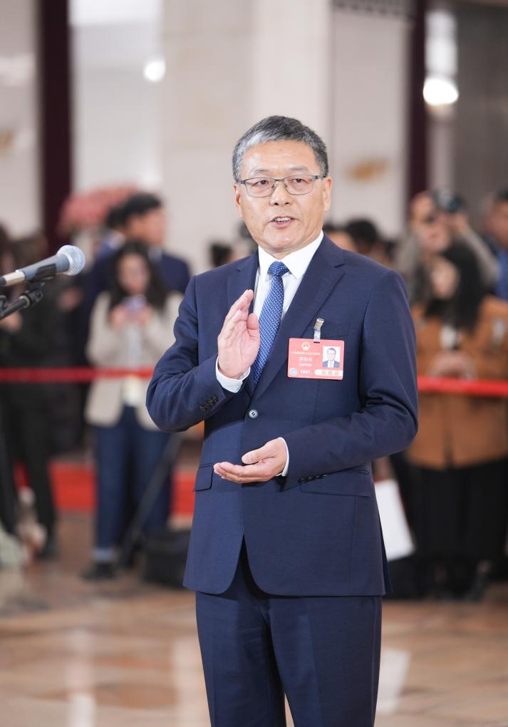 3月11日,第十四屆全國(guó)人民代表大會(huì)第三次會(huì)議第三場(chǎng)“代表通道”集中采訪活動(dòng)在北京人民大會(huì)堂舉行。這是全國(guó)人大代表李東林接受媒體采訪。新華社記者 李笑 攝