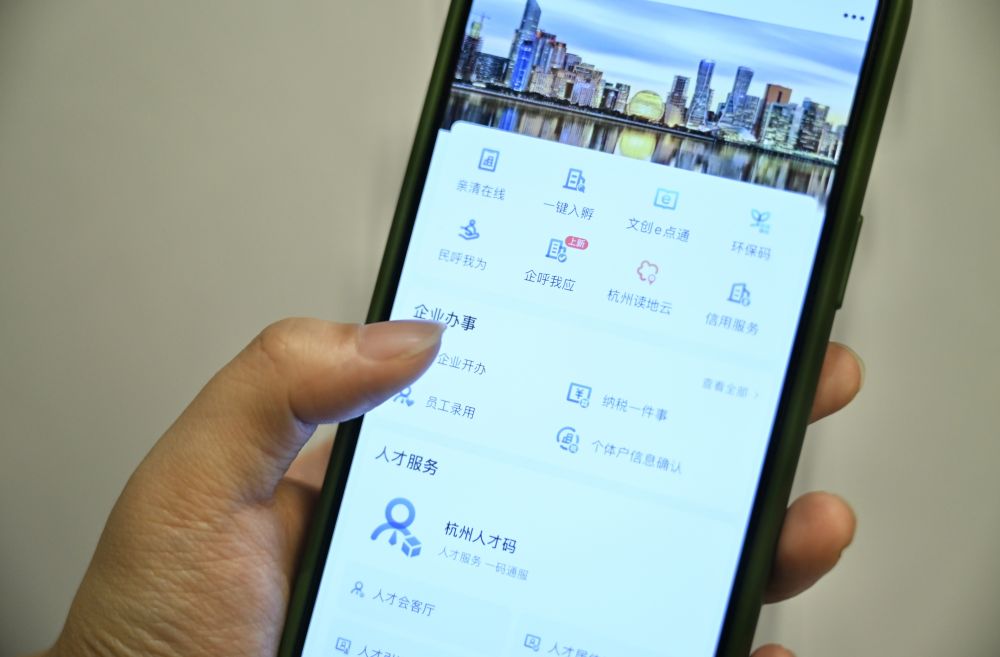 圖為“浙里辦”手機應(yīng)用客戶端上的杭州企業(yè)服務(wù)專區(qū)。新華社記者 劉銘翔 攝