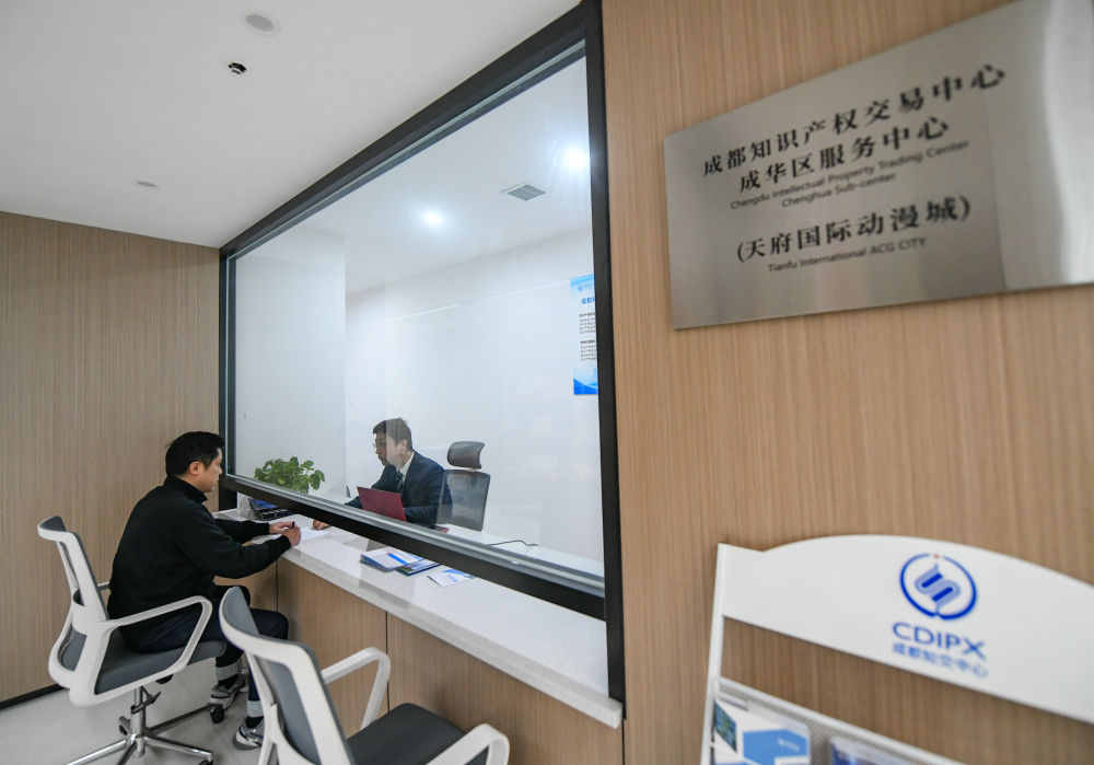 2月27日,民營企業(yè)工作人員在成都知識產(chǎn)權(quán)交易中心成華區(qū)服務(wù)中心咨詢相關(guān)政策。新華社記者 王曦 攝