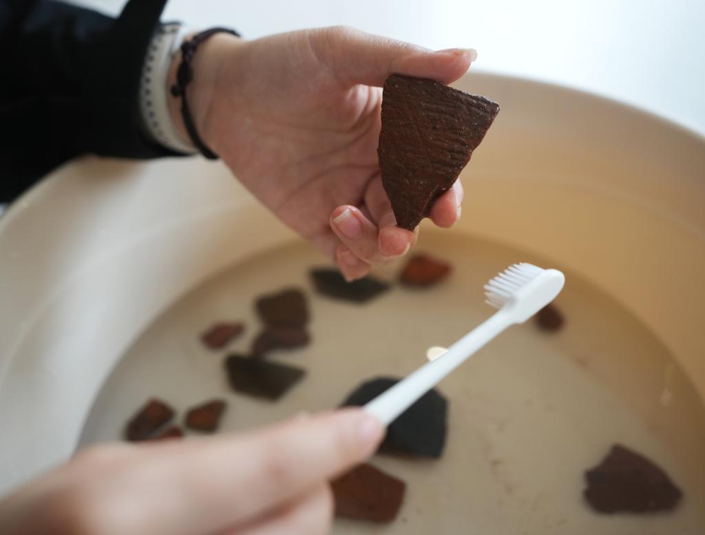 3月11日,在遼寧省朝陽(yáng)市北票市的考古人員住所,考古人員在清洗調(diào)查現(xiàn)場(chǎng)發(fā)現(xiàn)的碎陶片。當(dāng)日,來(lái)自遼寧省文物考古研究院的考古人員在遼寧省朝陽(yáng)市雙塔區(qū)調(diào)查紅山文化遺址。此前,考古人員在遼寧省朝陽(yáng)市凌源無(wú)白丁遺址群新發(fā)現(xiàn)多處紅山文化遺跡。新華社記者 李鋼 攝
