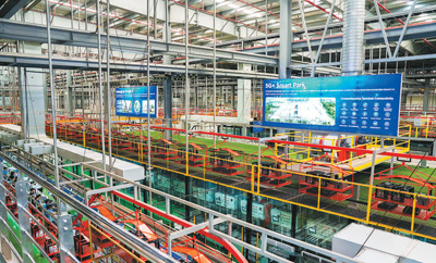 泰國(guó)春武里府,美的集團(tuán)家用空調(diào)事業(yè)部的5G全聯(lián)接工廠(chǎng)內(nèi)景。(新華社發(fā))