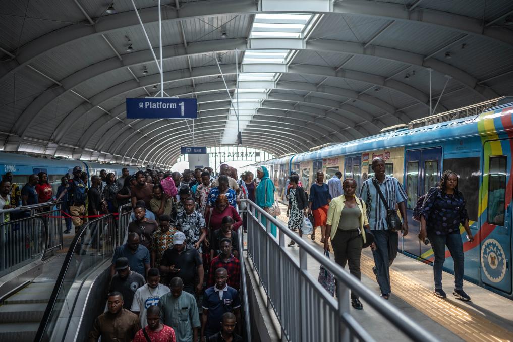 2024年12月2日,在尼日利亞拉各斯,乘客走在輕軌藍線的站臺上。拉各斯輕軌藍線是西非地區(qū)首條由中國企業(yè)自主設計、建造、施工、運營的電氣化城市軌道交通項目。新華社記者 王冠森 攝