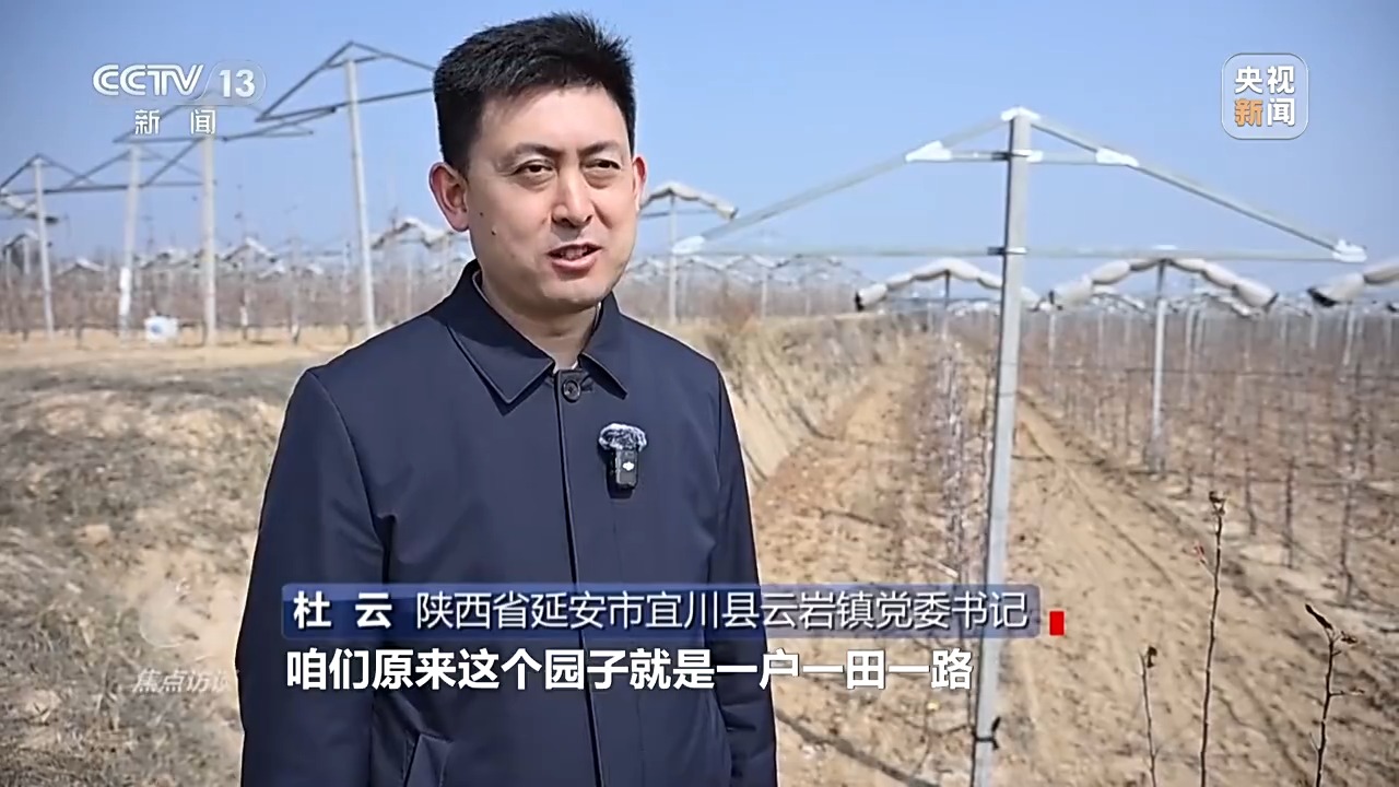 陜西省延安市宜川縣云巖鎮(zhèn)黨委書(shū)記 杜云:“原來(lái)這個(gè)園子是一戶一田一路,家家都要有生產(chǎn)路,原來(lái)有108塊,小田并大田以后并成了24塊,地界少了土地就多出來(lái)了,漲了95畝地。小田并大田以后以株代畝,土地不是按畝分,是按株分,一畝地能栽110株。如果你有一畝地就給你分110株,兩畝地分220株?!?/p>