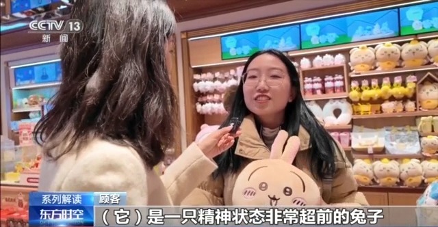 顧客:它是一只精神狀態(tài)非常超前的兔子,就是在生活當(dāng)中只要是自己開心就可以了。所以我覺(jué)得對(duì)于當(dāng)代青少年或者當(dāng)代青年來(lái)說(shuō),不管是工作也好,上班上學(xué)也好,它這種心理狀態(tài)是非常好的。