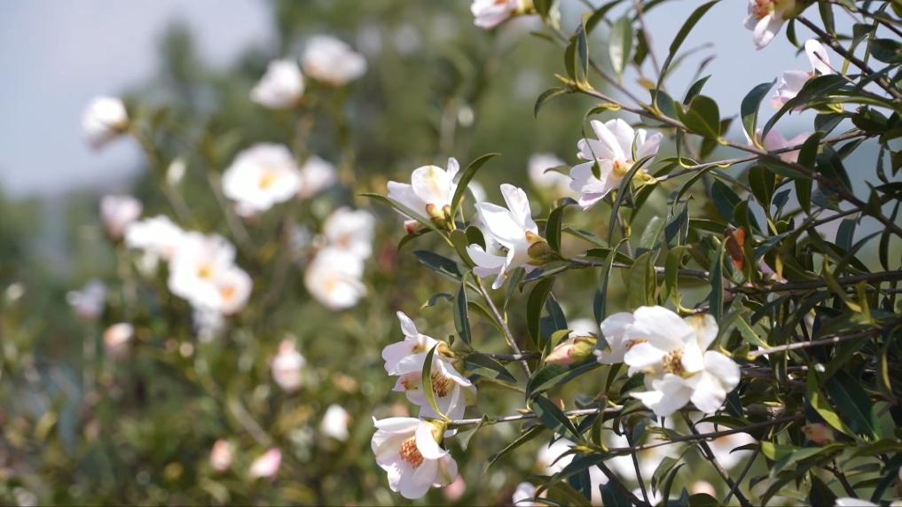 幾場春雨過后,基地油茶花競相綻放,在春日暖陽的照耀下熠熠生輝,一幅“千朵萬朵壓枝低”的絢麗美景鋪展眼前。