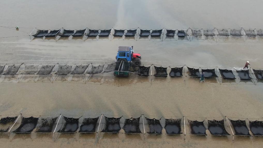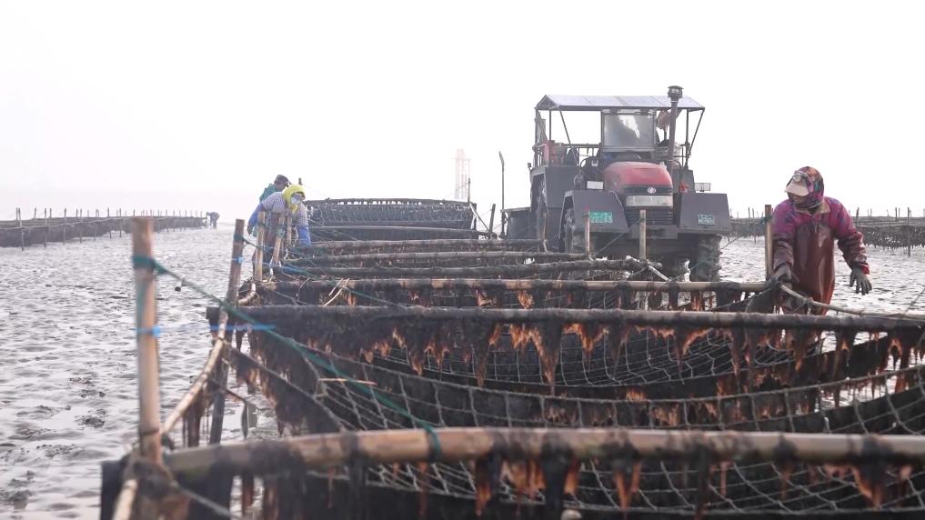眼下,江蘇如東正值“海上春耕”,條斑紫菜收獲正忙,工人們趁著晴好天氣,抓緊采摘。