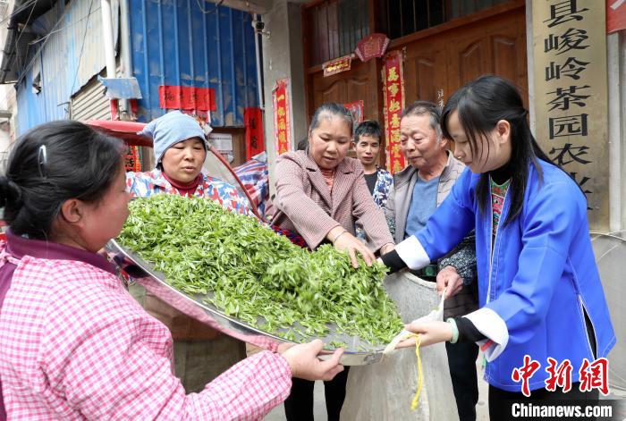 3月22日,在廣西三江侗族自治縣獨峒鎮(zhèn)八協(xié)村,茶農(nóng)在銷售茶青。龔普康 攝