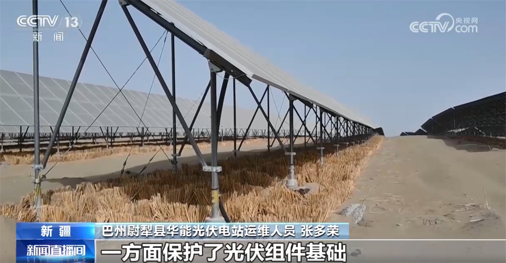 巴州尉犁縣華能光伏電站運維人員張多榮稱:“大概兩個月時間就能抽穗發(fā)芽了,一方面保護了光伏組件基礎(chǔ)不被黃沙掩埋或掏空,另一方面改善了周圍環(huán)境。”