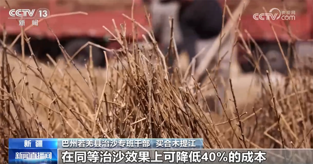 巴州若羌縣治沙專班干部買合木提江稱:“首次采用了“間隔治沙”這項創(chuàng)新治理模式,治理面積7.8萬畝,在同等治沙效果上可降低40%的成本。”