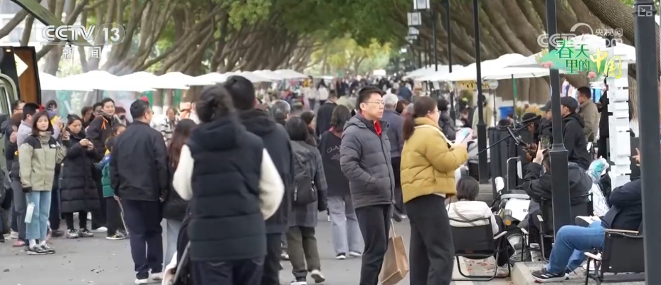 每逢周末,村口的梨花市集熱鬧開場,游客伴著音樂賞美景、品咖啡、嘗小吃,感受鄉(xiāng)村春日消費(fèi)新場景。