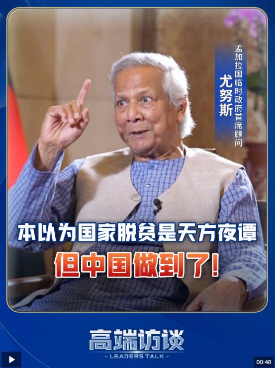 近日,到訪中國的孟加拉國臨時政府首席顧問尤努斯接受了《高端訪談》的專訪。對于中國的脫貧成就,他贊嘆不已。