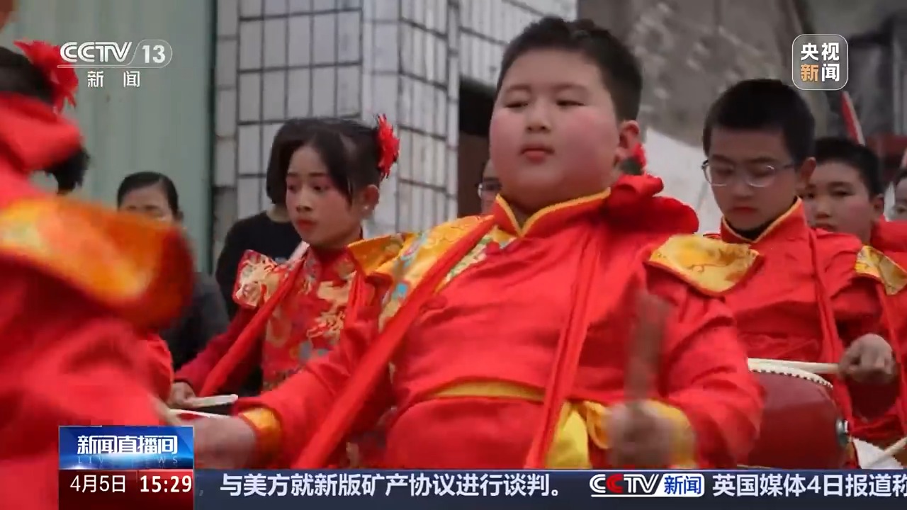 清明前夕,在浙江嘉興桐鄉(xiāng)市河山鎮(zhèn)八泉村的蠶俗廣場上,隨著蠶花鼓的敲響,一場傳統(tǒng)的“蠶花禮”儀式拉開了清明民俗會(huì)的帷幕。