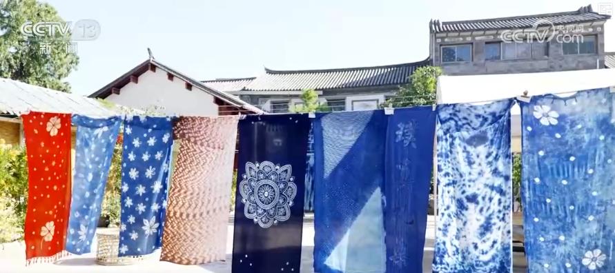 云南大理的扎染手工藝人們將傳統(tǒng)的扎染技藝與現代設計理念相結合,使扎染作品從傳統(tǒng)服飾走向了時尚和文化創(chuàng)意領域。在清明節(jié)期間,這些陽光植物與水天然結合的素雅文創(chuàng)產品頗受游客喜愛。
