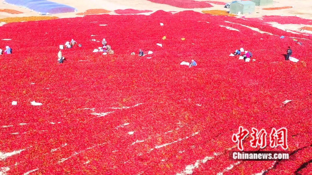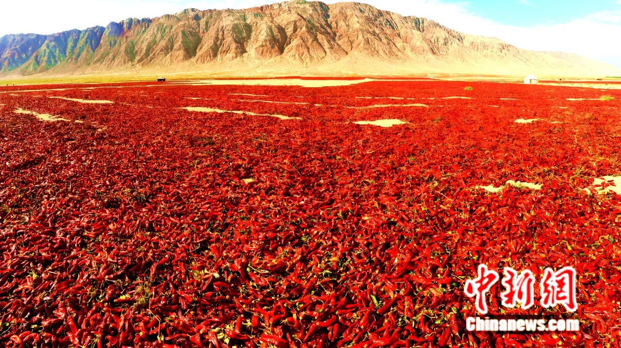 戈壁灘成晾曬紅辣椒場地。楊志榮 攝