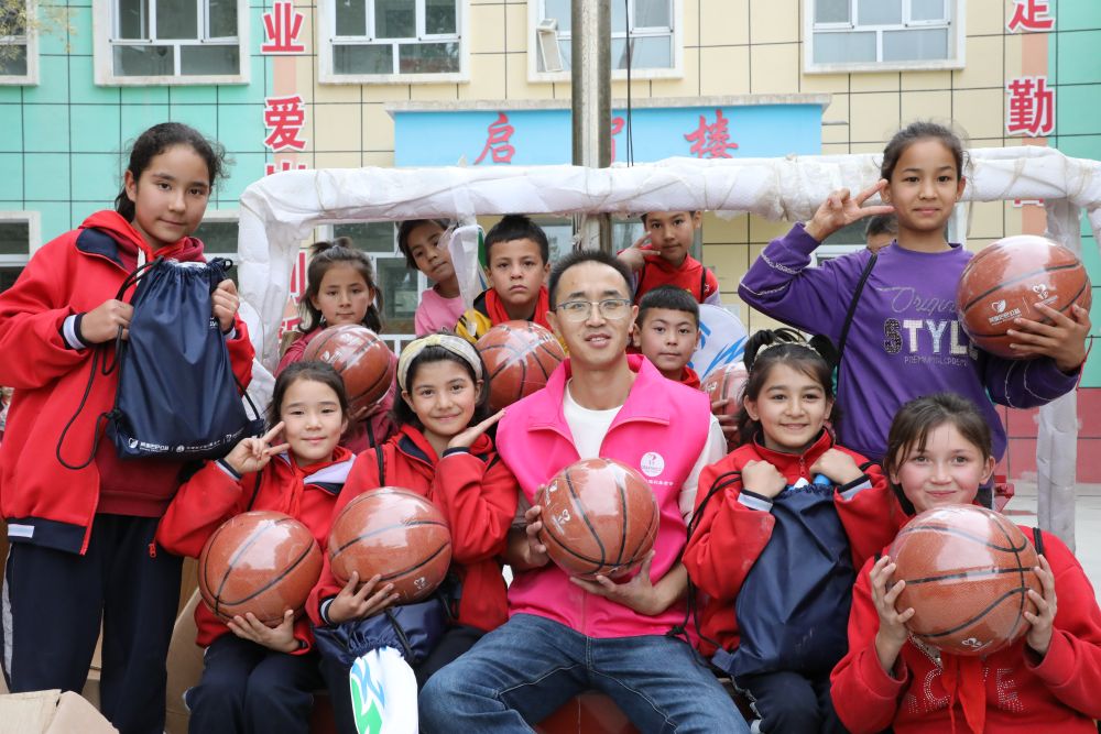 “上個(gè)學(xué)期曹永祺給我們學(xué)校聯(lián)系捐贈(zèng)了一批體育器材?!卑⒖颂湛h皮拉勒鄉(xiāng)阿克提其村小學(xué)4年級(jí)2班班主任米娜瓦爾·巴拉提江說(shuō),“現(xiàn)在我們學(xué)校的學(xué)生基本上都認(rèn)識(shí)他,學(xué)生也特別樂(lè)意拉著他一起玩?!?/p>