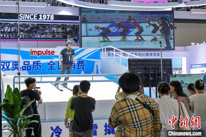 4月11日,第五屆中國國際消費品博覽會即將開展,企業(yè)推出具有AI功能的滑雪模擬機(jī)。中新社記者 駱云飛 攝
