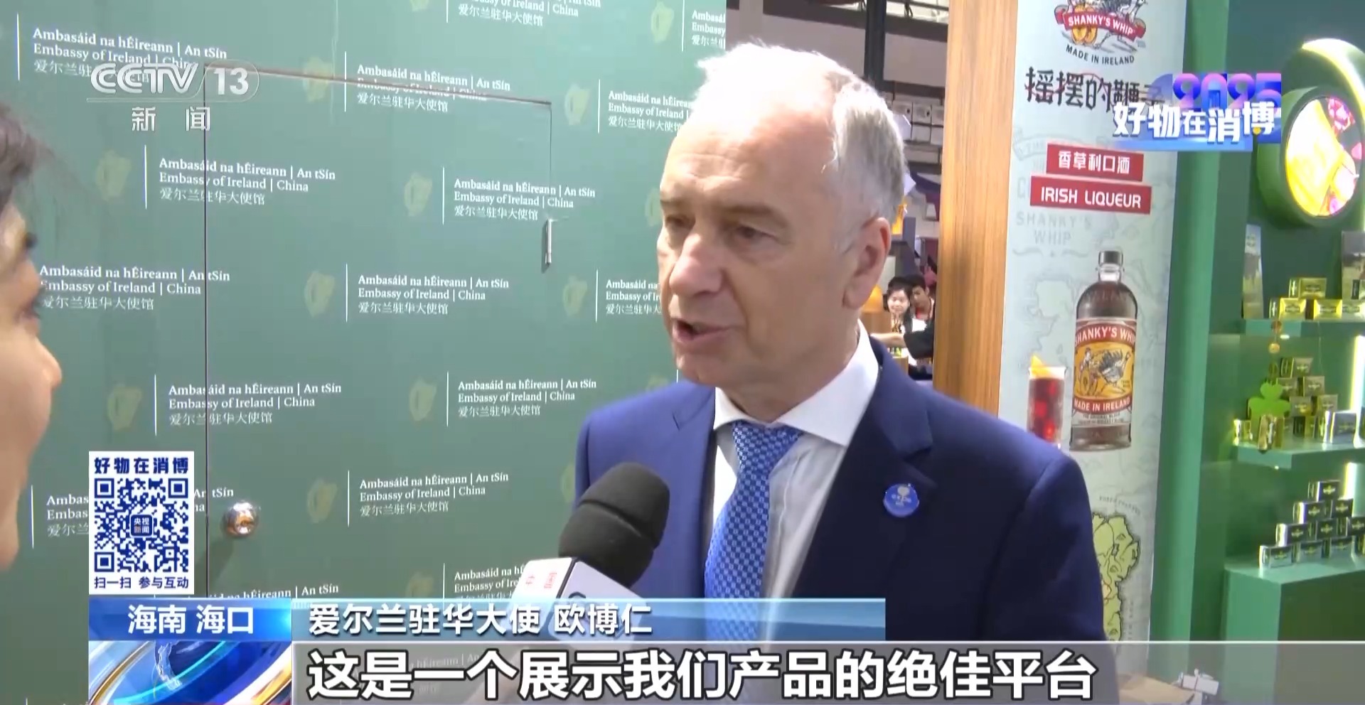 愛爾蘭駐華大使 歐博仁:對愛爾蘭而言,這是一個(gè)展示我們產(chǎn)品的絕佳平臺,當(dāng)前中國正在培育新質(zhì)生產(chǎn)力,而我們在高科技、制藥、生命科學(xué)等領(lǐng)域與中方有著廣闊合作空間,這些正是我們深耕的領(lǐng)域。