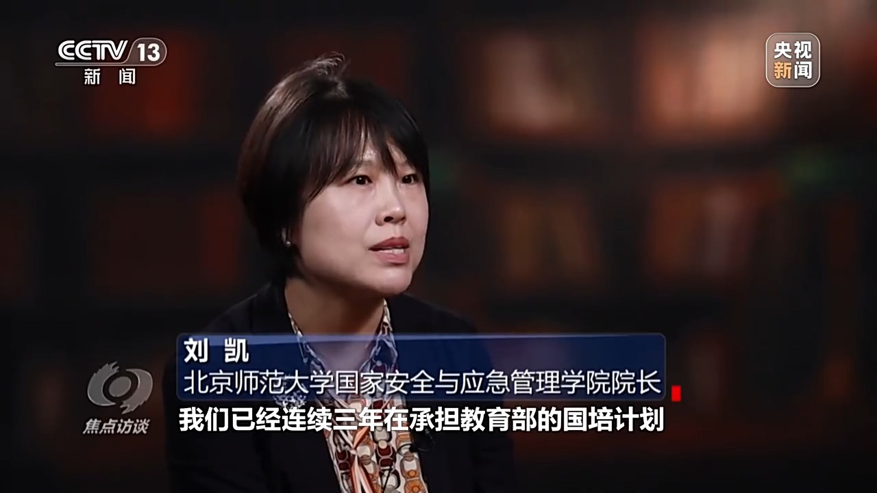 北京師范大學(xué)國家安全與應(yīng)急管理學(xué)院院長 劉凱:我們已經(jīng)連續(xù)三年承擔(dān)教育部的國培計(jì)劃。國培計(jì)劃就是給全國的中小學(xué)教師講授國家安全相關(guān)的基本知識,等他們回到自己的學(xué)校,在他們?nèi)粘J谡n的時(shí)候,就能夠把國家安全的知識融入數(shù)學(xué)課程、物理課程,包括其他一些課程中,這是一個(gè)非??沙掷m(xù)的路徑。
