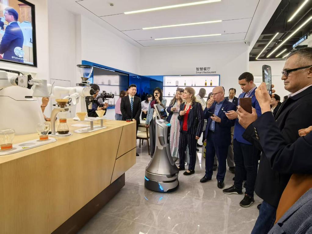 機器大廚、機器舞者、機器咖啡師……在九江機器人小鎮(zhèn),使節(jié)們與各種功能的機器人“親密接觸”,現(xiàn)場體驗智慧家居、智慧政務、咖啡機器人、無人餐廳帶來的便捷。