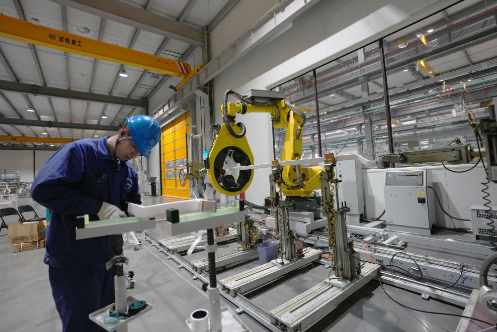 2月26日,在哈爾濱電機廠有限責(zé)任公司線圈分廠智能制造車間,工人與智能設(shè)備在進(jìn)行協(xié)同加工生產(chǎn)作業(yè)。新華社記者 王松 攝