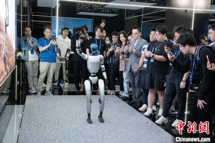 4月18日,港澳青年在杭州高新區(qū)(濱江)展廳觀看宇樹機(jī)器人表演?!蔷?攝