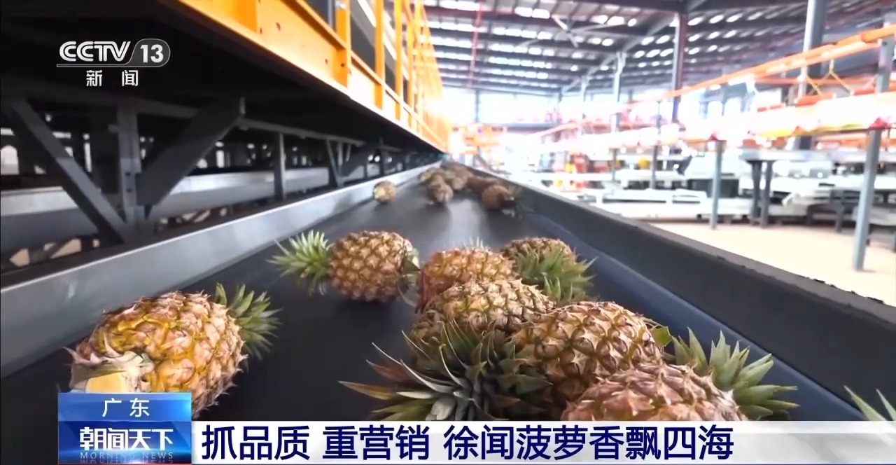 在這條100多米長(zhǎng)的智能分揀線上,一個(gè)個(gè)菠蘿正在排隊(duì)通過(guò)檢測(cè)箱。分選機(jī)可以實(shí)時(shí)檢測(cè)出每顆菠蘿的糖分、黑心等情況,僅用90秒,就完成了一顆菠蘿從農(nóng)產(chǎn)品到商品的轉(zhuǎn)變。