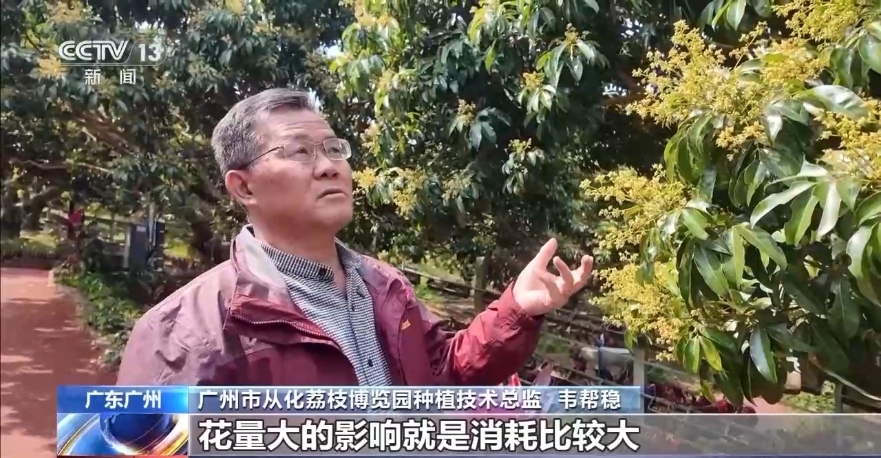 廣州市從化荔枝博覽園種植技術(shù)總監(jiān) 韋幫穩(wěn):今年花量比較大,花量大的話消耗比較大,所以我們說(shuō)我們利用飛鳥給我們預(yù)警,就會(huì)告訴我們多少花量比較合適。既能達(dá)到豐產(chǎn),又能達(dá)到優(yōu)質(zhì)。