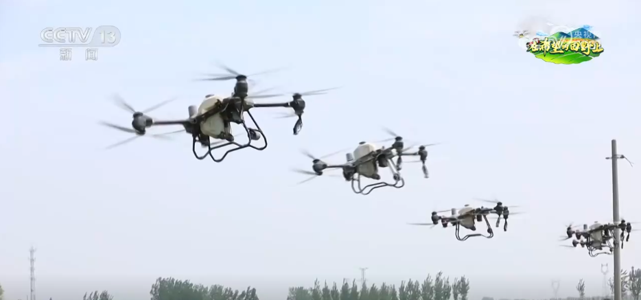 在濟(jì)寧市魚(yú)臺(tái)縣唐馬鎮(zhèn)楊宅子村的小麥種植地,6架植保無(wú)人機(jī)在飛手的熟練操作下,升空進(jìn)行“一噴三防”作業(yè)。“一噴三防”,是指通過(guò)植保無(wú)人機(jī)噴施葉面肥等混合劑,防治病蟲(chóng)害、預(yù)防干熱風(fēng)、防早衰,確保小麥增產(chǎn)豐收。