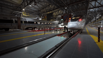 動車進入檢修庫內(nèi),工作人員正根據(jù)任務計劃進行動車組一級修作業(yè)。