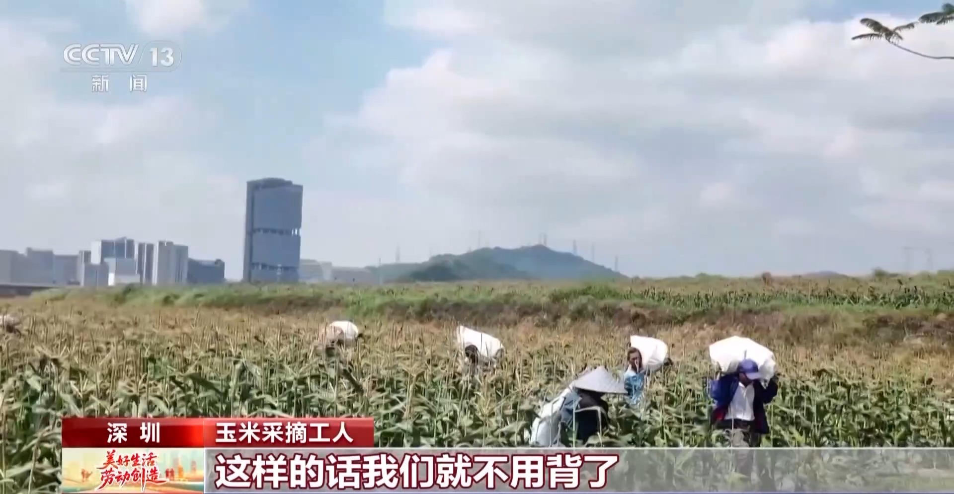 總臺央視記者 張春玲:在深圳光明區(qū),2000畝的玉米地都已經(jīng)成熟了,這次我的工作當中有了一個新搭子——采摘小車。
