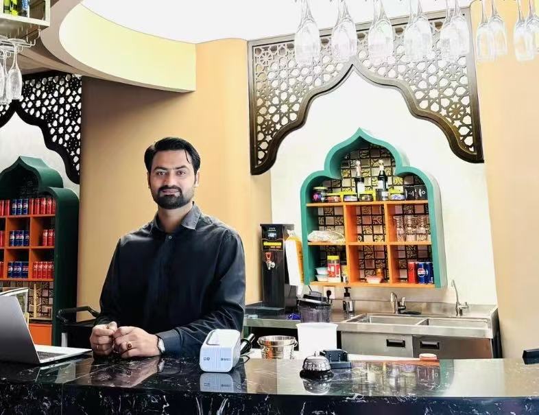 我們?cè)谥袊?guó)的網(wǎng)絡(luò)平臺(tái)上都會(huì)發(fā)送電子優(yōu)惠券,也有一些排行榜把我們店放上去,所以中國(guó)消費(fèi)者就會(huì)特意過來嘗試。我們有時(shí)也有學(xué)生折扣、會(huì)員卡的活動(dòng)。得益于中國(guó)的‘過境免簽’政策,我們店里有了更多的外國(guó)游客,一些外國(guó)游客可能不會(huì)用電子優(yōu)惠券,我們也有一些實(shí)體店的優(yōu)惠活動(dòng)。最近中國(guó)的一些‘促消費(fèi)’活動(dòng)我們也參加了,比如在美食節(jié)攤位上展示巴基斯坦美食,讓大家都嘗嘗。對(duì)于我們來說,不僅僅宣傳了我們的美食,還可以宣傳巴基斯坦文化?,F(xiàn)在我們?cè)诔啥紕傞_了一家新店,未來我們還想在西安也開一家。