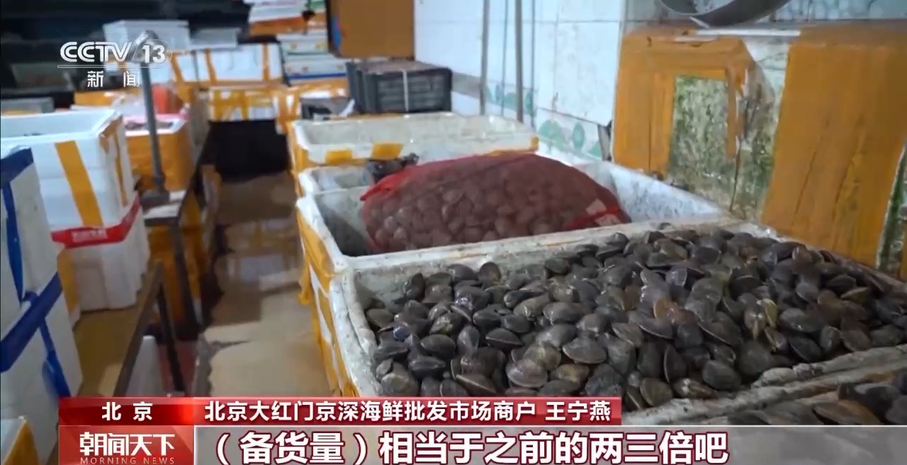北京大紅門(mén)京深海鮮批發(fā)市場(chǎng)商戶 王寧燕:根據(jù)“五一”的情況,扇貝、生蠔這種適合聚餐的,我們會(huì)多備一點(diǎn),備貨量相當(dāng)于之前的兩三倍吧。