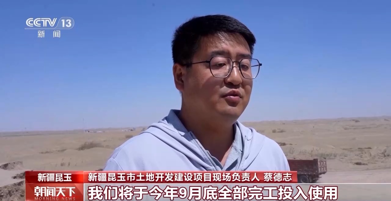 新疆昆玉市土地開發(fā)建設(shè)項(xiàng)目現(xiàn)場(chǎng)負(fù)責(zé)人 蔡德志:我們將于今年9月底全部完工投入使用,已完成現(xiàn)場(chǎng)總進(jìn)度的75%。