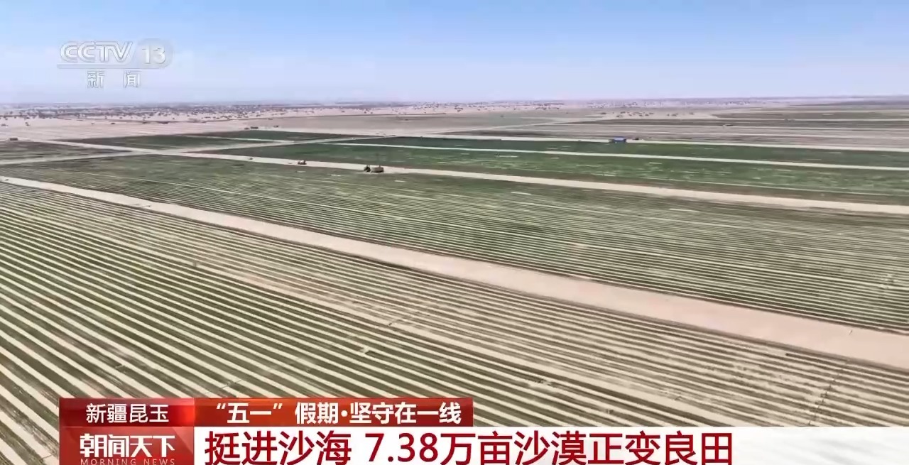 當(dāng)大多數(shù)人享受悠閑的假期時(shí),鏖戰(zhàn)在沙海深處的勞動(dòng)者沒(méi)有停歇。在位于塔克拉瑪干沙漠南緣的新疆昆玉市,7.38萬(wàn)畝土地開發(fā)建設(shè)項(xiàng)目進(jìn)入攻堅(jiān)階段,上百臺(tái)裝載機(jī)、平地機(jī)來(lái)回穿梭進(jìn)行平沙作業(yè)。